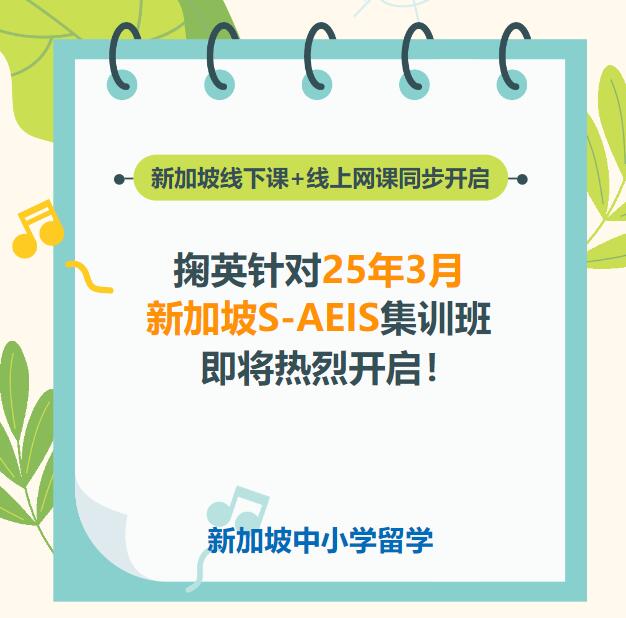新起點,新征程! 2025年S-AEIS的考試時間已經出爐,將于3月11日-13日(暫定)在新加坡進行。 為了給孩子們爭取更為充足的備考時間,掬英中學組AE...