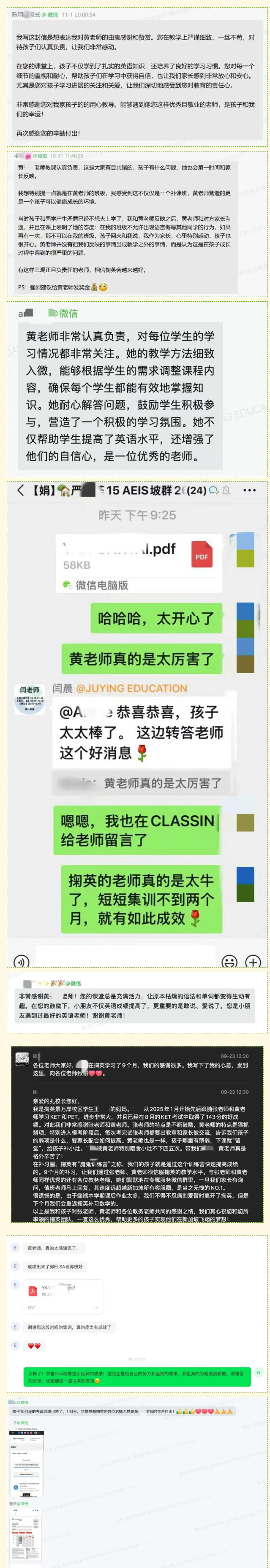 在持續學習中,學生逐漸建立起扎實的語法知識,閱讀了多篇優秀的作文范文,寫作能力顯著提升。從最初的簡單句到能夠組織段落、表達觀點,這些變化讓我倍感欣慰。閱讀和聽力方面,他們也能更快抓住重點信息,具備篩選細節、作出正確判斷的能力。同時,通過有結構性的口語練習與課堂訓練,學生的表達能力大幅提高,能夠更自信、完整地闡述自己的想法,并嘗試拓展說明。